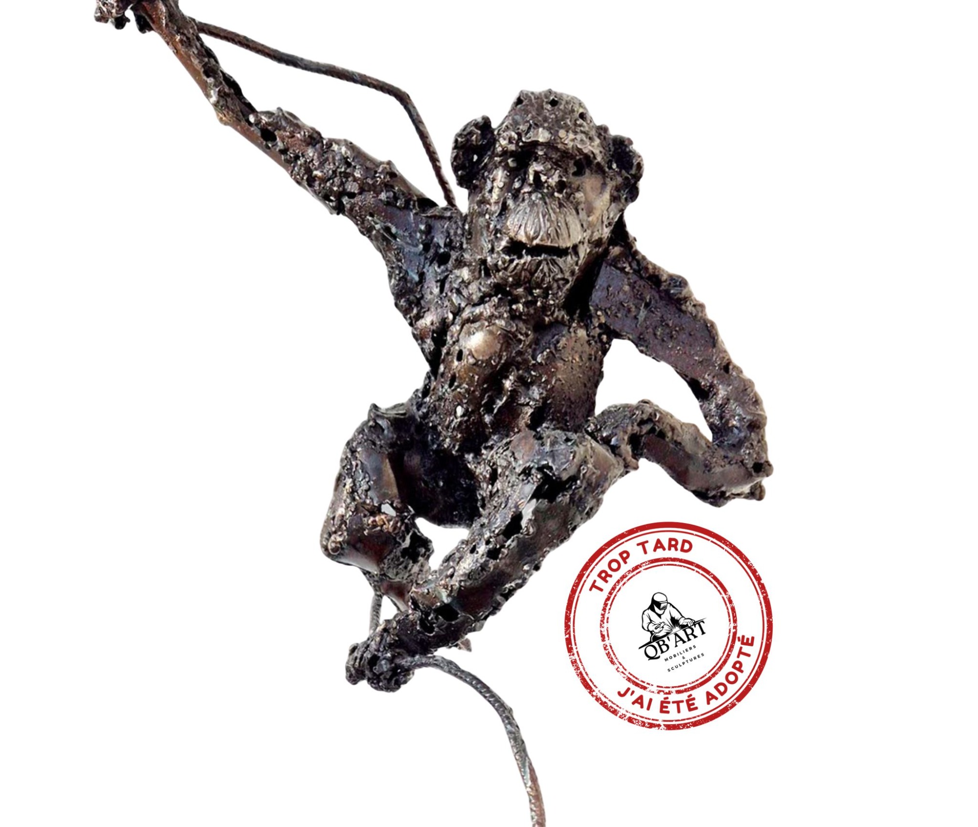 Renard en acier patte levée, finition rouille, sculpture expressive qui capte l’élégance de l’animal.